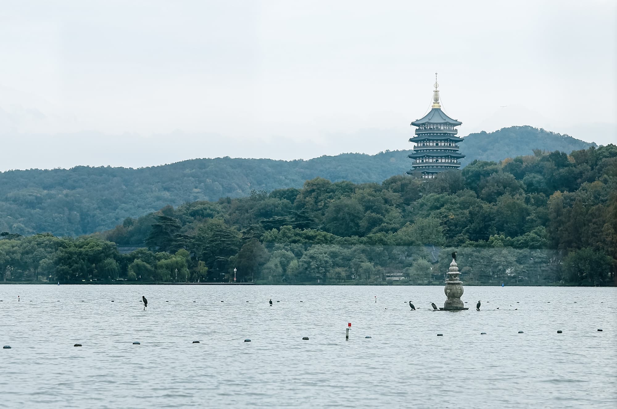 West Lake: A scenic and iconic landmark of Hangzhou, celebrated for its tranquil waters framed by lush greenery, rolling hills, elegant bridges, and historic pagodas, reflecting centuries of Chinese art and culture.